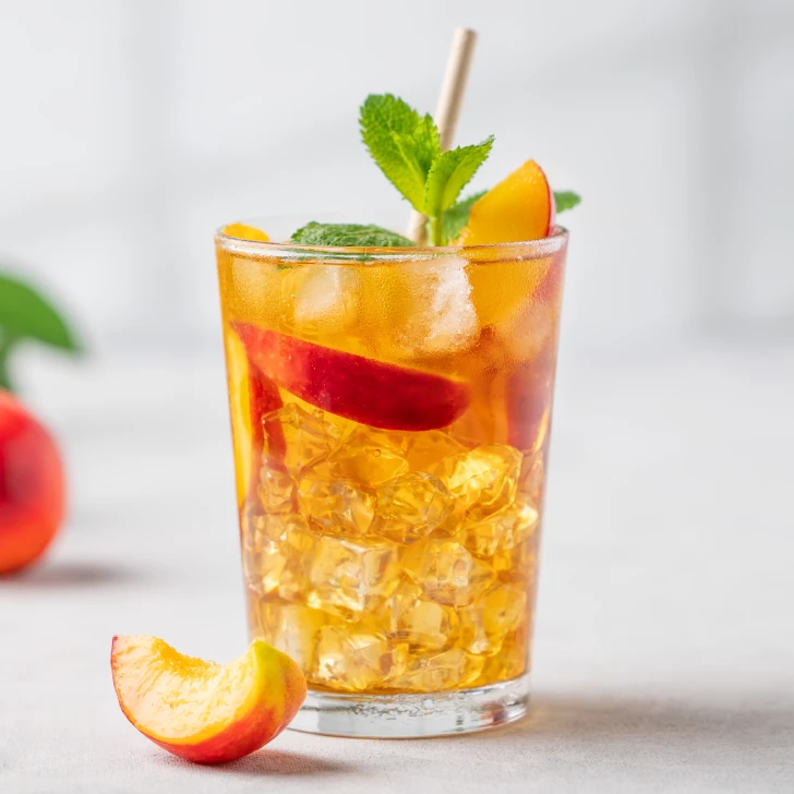 Fresh iced tea infused with sweet peach flavor. A fruity refreshment perfect for sunny afternoons.